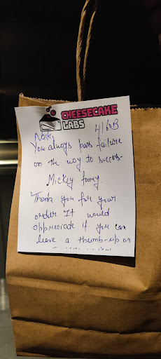 I haven't yet tried the in-store experience, but got it delivered through Uber eats. The creme brulé cheesecake tastes like money and cheese and melts in your mouth. Also got the chocolate cheesecake, amazing as it can ever get. But the most noticeable and remarkable factor was the note I got with it...🥺🤍 Literally had happy tears reading it... I've never had such an experience before. My heartfelt gratitude and prayers to the one who wrote it. Thank...