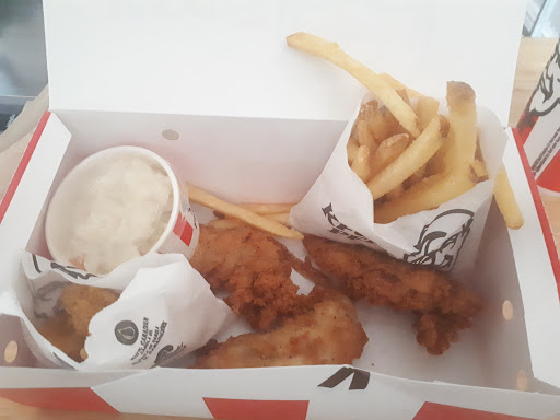 I used to like KFC, but not anymore! Nor do I recommend this place. So first off I want to say that I'm not satisfied with this meal that I've eaten. The only reason why I'm writing this review is because I never got a receipt with this meal, which usually I can let them know by filling out survey. This is what they call the Boneless box. I paid $14 for 8 pieces of popcorn chicken, three small chicken tenders that are literally the smallest I've ever seen for tenders, fries, and coleslaw. Not to mention I never received a fork which I guess you could say they saved a tiny bit on the environment, good for you KFC. And yes I did have a drink with this Meal which is about the only thing that I felt I didn't get ripped off from. But worst of all is the fact that I am still hungry after eating a meal, which is really sad because no one should leave a restaurant hungry. I can spend less than $14 at Burger King, and I will not be hungry. Even McDonald's does better. But to make a direct comparison of KFC I have to say that Mary Brown's is much better as I can't even finish the meal portion they give me, so I end up saving the rest for later. Shame on you KFC for leaving your customers hungry, you can do much better if you put the...