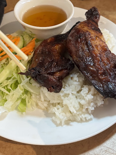 The pho broth was sweet, which I’ve never encountered before — easily the worst pho I’ve ever had in my life. Just a few sad, thin slices of meat floating in it. My friend ordered the chicken leg rice, and it was completely burnt and so tough it couldn’t be chewed. When we asked the server, “Is your chicken usually cooked this way? It’s so hard to chew,” her response shocked us — “Yes, it’s always like that, it’s because of the chicken breed.” What kind of ridiculous answer is that?! And she said it with total confidence!