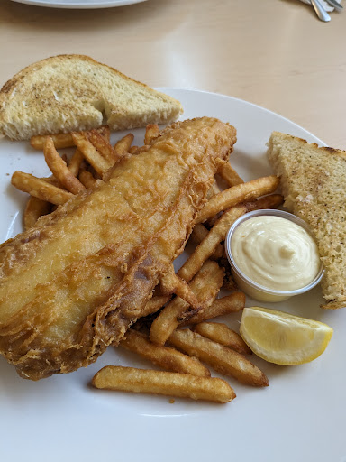 Ā Ā Ā Read moreWhat a jewel! The food was delicious and quickly served with such kindness. Great ambiance. Great service, I will definitely come again-perhaps to try their breakfast. My son and I ordered during their lunch special the fish and chips and tzatziki chicken feta wrap both of which came with two sides. The soup (corn chowder-a first for me) was rich and well made and the Caesar salad was a good compliment. Now the fish tasted very tender and moist and the batter was nicely crisp and not over powering. My son thoroughly enjoyed his wrap. All in all, a great place with great food at a...