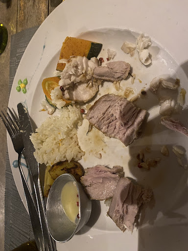 We visited here 7 years ago and had a brilliant night, so it seemed perfect to revisit this holiday. We booked a table for 8pm, the table allocated was directly in front of the singer, and we asked if there was another table available away from the main entertainment. After 30mins of being left stood in the middle of the restaurant we finally managed to grab the staff member who we had asked for a different table, to tell them if it was not possible we would just sit at the allocated table. We were seated at a different table, where it took an age for our order to be taken. At 9.30 we were finally served our meals. I opted for grilled fish with rice and veg, the fish was the worst cooked fish I have ever seen, 2 pieces were served first was white and dry and fluffy, the second dark grey, hard and inedible (see picture). I took the meal back to show the staff the fish, the first response was to ask if I wanted it cooking more, I think this was an attempt at humour. We had several conversations with members of staff where one tried to justify the cooking of the fish as how europeans like it. We were offered another meal on the house, which we reluctantly accepted as by this point I just wanted leave. I opted for grilled chicken, when it came it was the worst cooked chicken breast, dry and stringy, at this point we just left. We did see other food going out that looked and smelt nice so I am not sure what happened to ours, really disappointed by the...