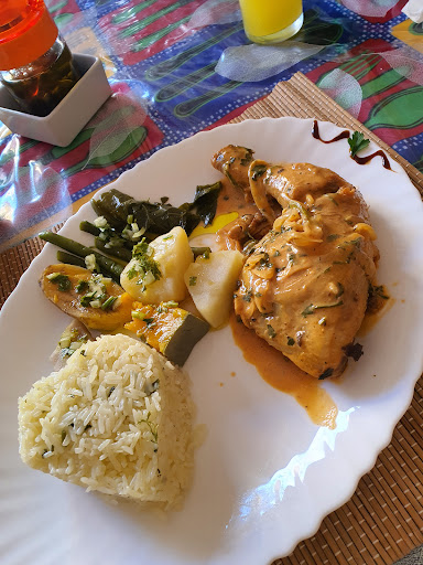 We just had a really great evening as a couple. We were so warmly welcomed by the owner Géraldine and her two girls that we completely forgot about time. We had two very tasty dishes with chicken and pork and for dessert a great homemade ice cream made from corn. In addition very tasty appetizers, malt beer and cake. Everything was delicious and prices were cheap. The service was courteous and warm and, despite my broken French, we had a lot of laughs with Géraldine, who speaks perfect french, and her service team. The restaurant is familiar, beautiful, loving and nothing is missing here. If there is still time tomorrow before we leave, we will eat...