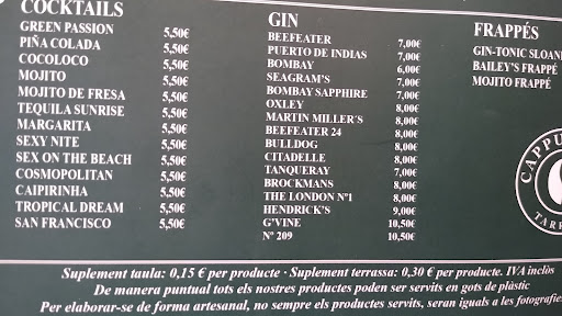 Read moreThe cappuccino is a great place for tapas & drinks , plus classic Catalan & Spanish dishes @ reasonable cost for such a prime location on the rambla area of the city & very close by to the Mediterranean balcony , which has spectacular views of the Roman amphitheatre , so why not maybe combine both visits & make the day a really special one , it's up to you the option is there if you want it . The cappuccino has the option of alfresco dining on the outside terrace & it's atmosphere is relaxed & informal , so casual dress is fine , inside dining is available & the premises are more upmarket & might I suggest you dress @ least smart casual as it's more of a full on evening meal experience or a business luncheon style venue & an ideal place for a group of friends to dine or a romantic evening with that special person in your life ! . The decor is a fusion of antique & modern furnishings & fixings & the vibe is very relaxing & tranquil it really does have a very special atmosphere it really is quite the place to be seen . The prices here are reasonable & quality of food is very good & only cooked fresh to order , so please note that a traditional paella does take @ least thirty minutes to cook , so if you do fancy one maybe order a starter I'm sure when it arrives you will agree it was worth the wait ! . The tapas here is very good & the portions are generous & this is a quicker dining option for those who are maybe on a work break or for those who want a quick bite & then possibly want to explore the beautiful city of Tarragona & it's historic architecture & attractions & it's market's etc . This is a great place to drink & dine in pleasant surroundings , with polite friendly waiter/waitress & @ reasonable cost for such a prime location as before mentioned it could be your cup of coffee ! It certainly was mine . Popular with locals & tourists alike can...