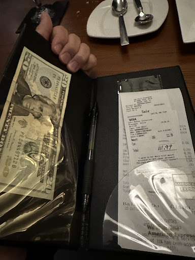 Service: The next table was seated after us but they received their steaks first. This would explain why my ribeye was lukewarm and overdone. It probably sat on a counter waiting to be brought out. Our waiter was nice and courteous and seemed genuinely concerned about my disappointment with the ribeye. He wanted to make things right and suggested to take it back…if anyone knows anything about restaurants you never ever EVER send food back to the kitchen. I refused his suggestion because I do not complain about food but this place is a total bait and switch. They act like a premium steak house which it is not. I’ve had better steaks at Outback. I tried to stay composed and keep things to ourselves as I didn’t want to make a scene. They decided to “credit” the steak against my will. I ordered it and ate it unwillingly so I wanted to pay for it as I am not one to freeload. I didn’t agree with them crediting the steak but they did anyway. I left a tip large enough to cover the difference for the waiter since this was not his fault. We received a complementary dessert maybe because we had a reservation as being an anniversary. Kudos for that. Guess what…we didn’t touch it. You don’t send food back or complain and then eat anything after that.