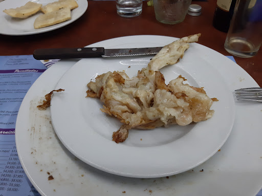 La cubierta de la Pamplona que viene en la parrillada era fácil 1/4 del total (fotografía adjunta), siendo unicamente grasa, y escaseando el tocino en el interior. Fuera de los sabores que tenian la morcilla y el chorizo (ambos resecos y sin sabor), el lomo estaba pasado o recalentado, como si hubiera sido hecho en un sartén. El arroz era casi un engrudo, digno de cualquier grupo de scouts. Las empanadas eran las típicas congeladas ($3500 las 6). Según noté, solo salvó la milanesa. Agrego que el aceite disponible en la mesa, no era de oliva como indica su etiqueta, y que tras, 20 minutos tras el último bocado, tengo nauseas y un dolor estomacal.