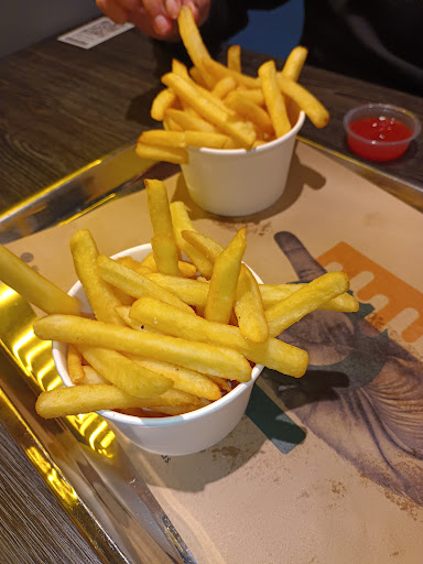 Otro aspecto que podría mejorar es el precio. Personalmente, solo voy cuando hay ofertas especiales, como los descuentos del 40% con bancos como Falabella o Santander, porque de lo contrario, los precios son demasiado altos para lo que se ofrece.Además, las hamburguesas son bastante pequeñas y no incluyen combos, lo que complica calcular cuánto costará la comida, ya que debes pedir la hamburguesa, papas y bebida por separado. Esto puede resultar en una experiencia menos conveniente y más costosa de lo esperado.