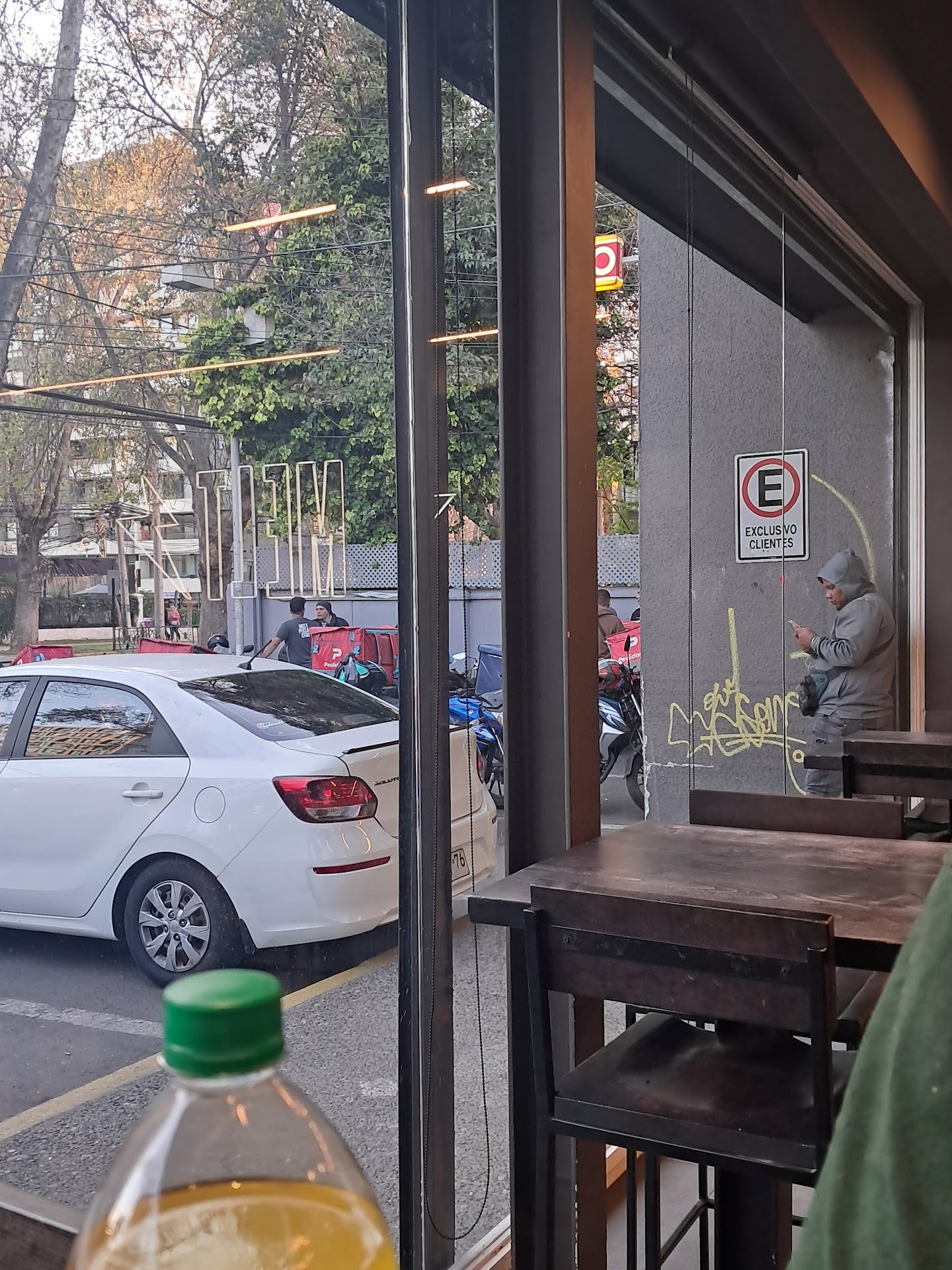 En sus alrededores lleno de motos de repartidores consumiendo cervezas. El administrador del local mueve su vehículo a la zona de discapacitados ( teniendo espacios disponibles) y continúa disfrutando con las personas que se encuentran al exterior del local tomando y fumando hierva.