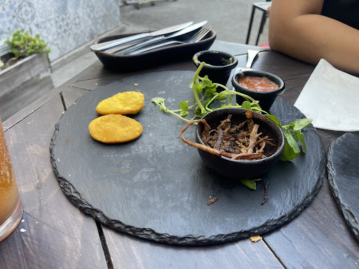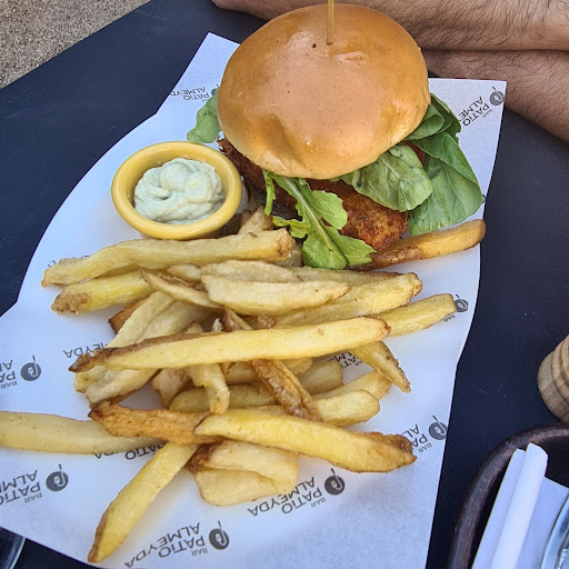 Read moreFuimos por una recomendación y en verdad fue una pésima experiencia 👎🏽 Respetamos la espera en la fila sin embargo la niña dejó pasar por descuido a un grupo antes y nos estuvo engrupiendo cerca de 20 minutos con que estaban limpiando nuestra mesa hasta que reconoció su error y nos hizo pasar, posteriormente nos dijo que no nos podíamos sentar los 4 en la mesa por el tema del aforo lo que habría sido entendible de no ser porque a 3 metros de distancia había 2 mesas juntas con 10 personas pegadas, al señalarle aquello nos dijo que podíamos sentarnos los 4 en la mesa. La atención fue sumamente lenta y siempre nos atendían personas diferentes, las porciones de papas fritas eran diminutas, los tragos eran lo único bueno aunque se demoraron mucho en traerlos (más que la comida), a la hora de servirlos el garzón derramó uno encima y nisiquiera se disculpó. El colmo fue que pedimos una porción de sopapillas para compartir y resultó ser un chiste, 5 sopapillas del tamaño de un alfajor que estaban duras y frías, acompañadas de una carne mechada fría y rancia que no daban ni ganas de comer (ese plato costaban alrededor de $6.900), al señalarle al chico que atendía que nos entregó una comida fría accedió sin disculparse a ir a calentarlas y jamás regresó (esperamos más de media hora mientras terminábamos los tragos y no volvió a asomarse por la mesa ni la terraza). Finalmente pedimos la cuenta y milagrosamente llegó la chica que nos atendió al principio quien lejos de disculparse cuando le contamos la pésima atención que tuvimos u ofrecer algo que nos dejara siquiera satisfechos más bien se extrañó de que no la hubiésemos llamado antes (siendo que no la volvimos a ver desde que nos entregó la mesa), nos dió excusa tras excusa de que deberíamos haberla ubicado a ella para que nos atendiera (desde cuándo el cliente es quien tiene que estar persiguiendo al garzón?) Lógicamente le dijimos que no íbamos a pagar esa porción de sopaipillas frías que nunca nos llegaron, al parecer no le agradó la idea pero nos dijo que ok. En resumen fue una muy mala primera experiencia en Patio Almeyda, espero de corazón que mejoren la atención para el futuro porque con el desorden, descuidos y la pésima comida que sirven creo que están muy lejos de ser un lugar remotamente...