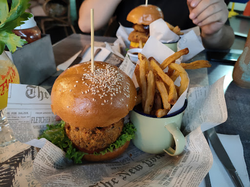 En primer lugar, la comida estuvo exquisita, la hamburguesa muy rica junto a todos sus ingredientes. Las papas fritas también muy ricas, pero podrían haber estado mejor, ya que algunas estaban más fritas que otras. Los tragos, mejor aún, probé el Exotic Celery y mi amigo el Lost in Hawaii, ambos muy bien preparados y con sabores perfectamente equilibrados. El único punto bajo, lamentablemente fue la atención, a excepción de la recepcionista quien fue muy simpática y nos recibió y despidió de buena manera. Primero se demoraron bastante en atendernos, luego, en un momento que aún estábamos comiendo la anfitriona se acercó a preguntarnos si podía retirarnos los platos, siendo que aún teníamos comida en estos. No pasaron ni 5 minutos y llegó otra garzona que nos preguntó lo mismo, siendo que mi amigo aún tenía comida en el plato y yo recién estaba terminando de comer. Al final le dijimos que nos retirara, nos consultó si queríamos algo más y le dijimos que no, y ni siquiera dio aviso de esto para que trajera la cuenta, sabiendo que ya no íbamos a seguir consumiendo. Finalmente pedimos la cuenta, la anfitriona me pregunta medio de pago, le digo efectivo y me dice que no reciben efectivo, por lo que tuve que pagar con tarjeta de débito, y esto nunca nos fue informado en primera instancia.