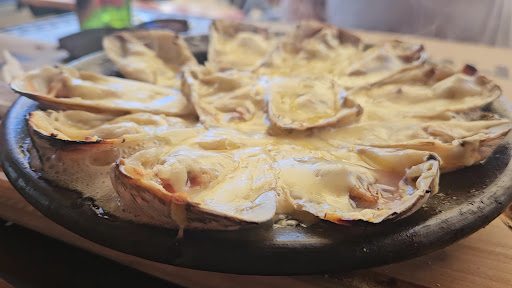 Machas a la parmesana: Vinieron alrededor de 12 machas con un queso muy rico, esta derretido y no quemado. me proporcionaron pimienta y jugo de limón, a este plato le pongo un 4 de 5.