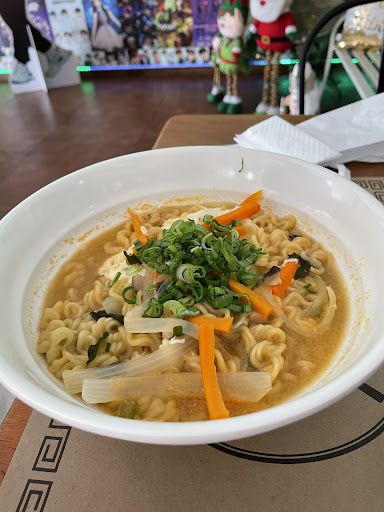 Came here for lunch and enjoyed some good food. The fried chicken was really good. So well cooked and the chicken so tender. We had the meat and veggie Raman. The meat Raman was far better in taste the dumplings were delicious. The restaurant was good especially if you like Korean pop groups. The staff are friendly. The variety of lemonades are really good. We had ginger and a mint one. Both delicious but on the strong side. The major downside is the complicated phone menu you need to use. You order on your phone and the waitress then scans the qr code. We found this a...