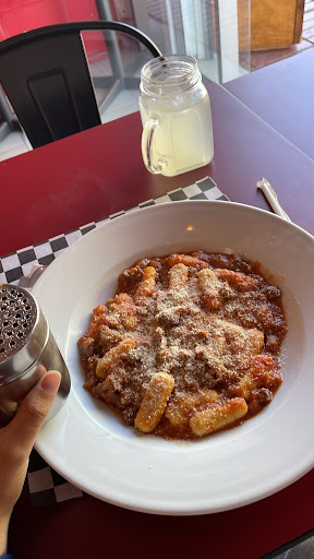 Read moreUno de mis platos favoritos son los ñoquis con salsa, honestamente la salsa estaba normal no se sentÃa que fuera la gran cosa, la carne estaba en trozos algo que no me agrado, estaba dura y sin mucho sabor, si estuviera molida la carne hubiera sido otra cosa. La forma de los ñoquis tampoco me agradó mucho, parecen chorizos mal hechos. Prefiero la forma clásica, a la vista son mucho más bonitos que los que sirven. Me dejaron queso rallado para añadir a mi gusto, el jugo sabÃa muchÃsimo a agua. Creo que es un intento de comida italiana una...