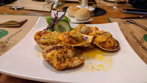 Read moreInsípido, anacrónico y mal llevado. Da la impresión que el jefe de cocina de este local le perdió el respeto a su profesión o simplemente nunca le tuvo algún respeto, claramente no le importa ni la presentación de su menú y menos aún la cocción correcta de los pescados y mariscos que venden. Da la impresión que pretenden seguir con los platos que los hicieron populares durante los 80-90's y quién sea que llegue como chef tiene que simplemente repetir lo que siempre se ha hecho. El menú online no tiene nada descrito, solo títulos, así que si es tu primera vez en el local te tiene que explicar TODO el mesero. Mi experiencia: de bienvenida papas fritas - igual que en un cumpleaños de niños - con aceitunas de azapa, pan frío y claramente añejo a las 10 de la noche Ostiones a la parmesana hechos con queso "parmesano" en polvo que arruina toda la delicadeza de los ostiones. Salmón absolutamente recocido servido con queso barato laminado encima con un mango verde entre medio... Simplemente desastroso. El servicio muy atento, nos atendió muy bien una señorita con un bello acento venezolano. Las dos estrellas son por el pisco sour y la atención, la cocina no se merece una estrella. Tras una semana en Arica, mi cena en este "restaurante" fue la peor comida que tuve que experimentar. Mantente alejado, la vista al mar no...