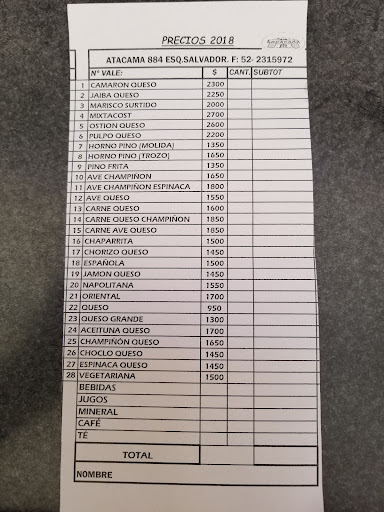 Very tasty empanadas, those are like italian calzone but with Chilean ingredients. Some others are fried with cheese and stuff. Attached is the menu, unfortunately is only on Spanish, but easy.to translate, the most important thing is to know what an...