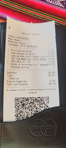 Una de las experiencias más malas que hemos tenido, la Maizena salteada con churrascos (por qué tallarines salteados no eran, lomo no habia) el arroz chaufan estaba quemado con un olor horrible, malísimo todo, de un total de 8 platos devolvimos 4 platos, no podemos creer que nos cobren 6000 pesos por bebida, la atención no hubo problema es más solo paso vergüenza debido a que tuvo que recibir los comentarios de nosotros, creemos fielmente que no debiesen vender comida peruana estimados, una pena la experiencia y el pago...