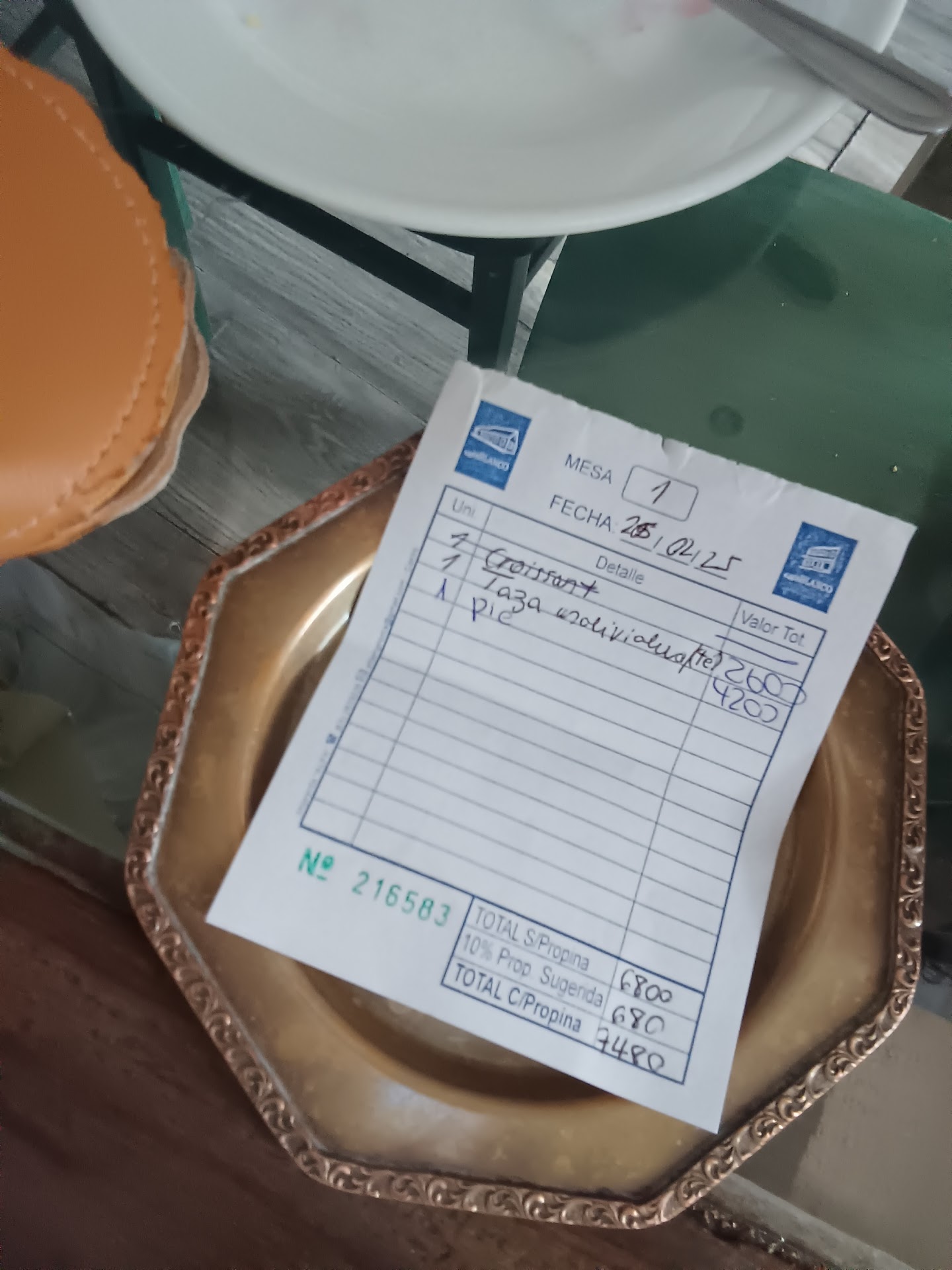 Pésima experiencia, eramos 2 personas y para beber pedimos 1 americano y 1moka, este último llegó helado, se entiende que un café que lleve leche jamás será caliente como un americano, pero que llegue frio es otra cosa, había muy poca gente atendiendo por lo que se paró mi esposo a pedir que llegue uno con temperatura normal, llegó el mismo pero ultra caliente... Además de nuestros cafés pedimos tostadas con jamón y queso y un trozo de torta mil hojas.. las tostadas fomes, solo tenían de opción pan integral o pan pita..elegimos integral ( no sé si siempre será así, ya que la carta no lo especificaba), el tamaño era del pan de molde pequeño, se notaba que era de bolsa y no casero... Está bien que sean tostadas pero un poco de amor no le viene mal a nadie, por último tostarlas con mantequilla, pero eran secas y duras, el jamón era un planchado y el queso era tipo gouda, venía para armarlas tú, y la torta mil hojas, nunca sabré como era ya que no llegó 😔, pedimos la cuenta y como eran tan pocas niñas atendiendo, terminamos parandonos a la caja. En la precuenta estaba incluida la torta por lo que pedimos que la sacarán ya que no había llegado, se hicieron las sorprendidas pero no nos pidieron nisiquiera disculpas o nos dieron una explicación, solo la sacaron y procedieron a pedir propina, que lamentablemente no se las dejé, siempre lo hago, fui garzona muchos años, y es super penca cuando no te dejan la propina, pero acá hubo un desinterés en la atención muy notorio... Y por eso decidí no dejarla. Era nuestro desayuno, así que me dió mucha lata comenzar así el día...para...