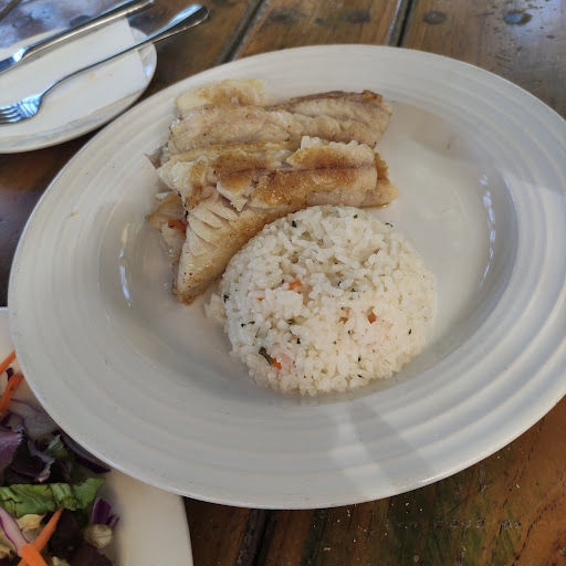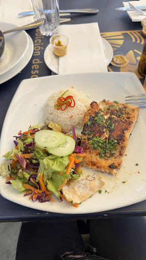 Los platos principales venían con acompañamientos de arroz y ensalada incluidos en el precio. Los pescados o eran fritos o a la plancha.