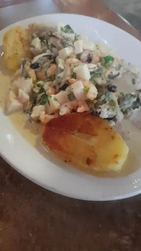 Visitamos este restaurante en un día lluvioso y agradecimos encontrar una estufa a leña encendida al entrar, lo que hizo que el ambiente fuera muy acogedor. Como cortesía, nos ofrecieron unos pancitos con mayonesa de ajo, que ayudaron a acortar la espera de los platos, que fue de aproximadamente 30 minutos. La vaina tenía buen sabor, pero habría sido perfecta si estuviera más fría. En cuanto a los platos principales, probamos dos opciones. La primera fue una albacora a la plancha con salsa de mariscos al pil pil (mariscos salteados con ajo y ají cacho de cabra) acompañada de papas doradas. El sabor era maravilloso, aunque el tiempo de cocción del pescado podría haber sido un poco menor, ya que quedó ligeramente seco. El otro plato fue una reineta a la plancha con salsa Margarita (mariscos con salsa blanca) y papas doradas. Este plato tenía un buen sabor y el pescado estaba en su punto de cocción. Cabe mencionar que, aunque la carta indica que el acompañamiento es con papas cocidas en plural, en realidad solo se sirve una papa partida en dos