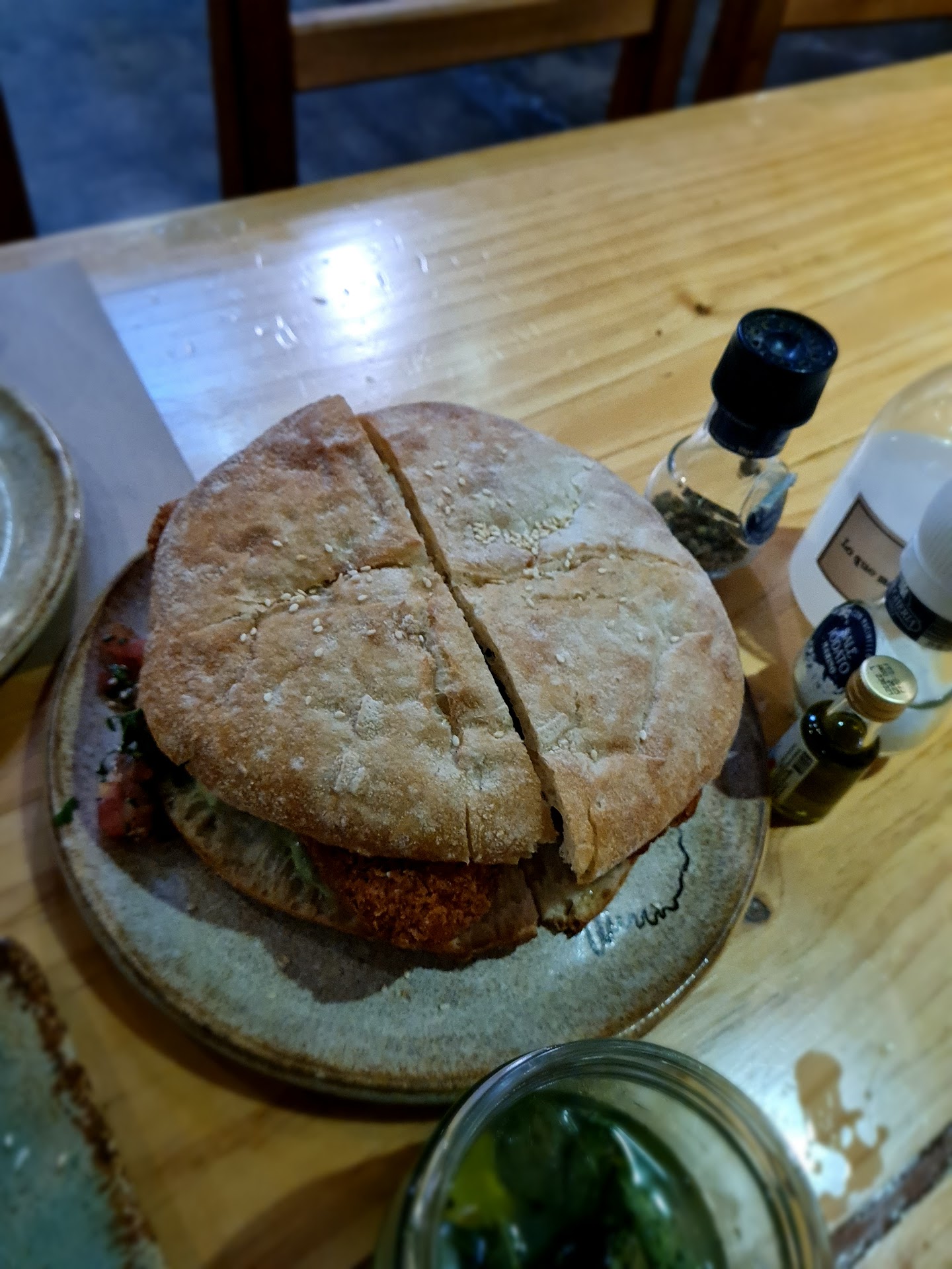 Read moreMe pareció un lugar muy acogedor y marcado por la excelente atención de los garzón es, felicitaciones!!! Partí, como es usual, con un pisco sour que para ser críticos, no estaba muy rico porque usan limón sutil directo en la licuadora y así siempre es probable que te quede con un amargo pasado. Me parece que le faltó pisco también, pero es cuestión de gustos!! Me trajeron pancito calientito y ají verde macerado en oliva y limón, estaban exquisitos!! Le siguió un sándwich que se llama "te pillamos Chanchito" y que contiene carne de cerdo, palta, tomate, mayonesacasera y chucrut morado, una mezcla que le dio un sabor inigualable, sumado a la crocancia de un pan ciabatta!! Creo que el único detalle es que la mayonesa era muy poquito, el resto anduvo impecable. Me trajeron una pasta de Cacho de cabra que estaba realmente de otro planeta, maravillosa, deberían venderla!! Me parece un restaurante algo caro pero finalmente lo vale. Creo que la deuda más importante es no estar a la altura con el disco sour porque en Chile eso es un crimen!! (hay muchos lugares con sour increíble y aquí hay potencial, sólo hay que cambiar la receta!!). Recomiendo con seguridad este lugar!! Sin duda volveré a probar su carta,...
