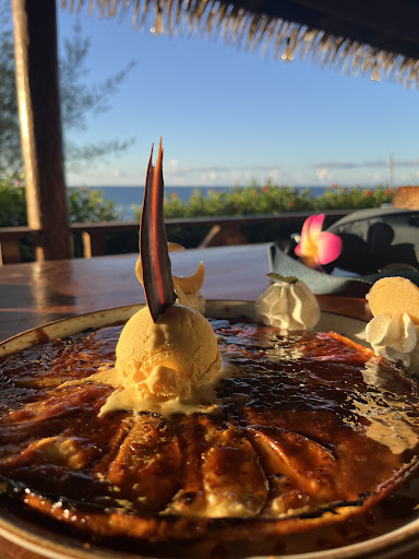 Read moreYou will love this enchanting and impressive place. Like most tourists visiting Rapa Nui, we were only here for a few days. With all the restaurants to choose from in Hanga Roa, we feel extraordinarily lucky to have stumbled upon Taha Tai. Someone in the kitchen is an artist with technical skills to match their imagination. We tried it on our third night and were so impressed by the food, the view and the genuinely warm service that we returned on our last night on the island. The braised lamb is the best I’ve ever had and the steak risotto was perfect. The ribs just slide off the bone in a barbecue sauce made with local honey. The guy at the full bar is no rookie and the finalé for was this dessert suggested by our server. It’s the glazed apple on the menu but that description doesn’t do it justice. It’s a fresh crêpe with thin, sliced apples, arranged in a wheel under a glaze decorated with whipped cream, artisan ice cream in the center and chocolate shavings. Definitely enough to share for three or four people after an already amazing meal. Seriously folks do not miss this place as part of your Rapa...