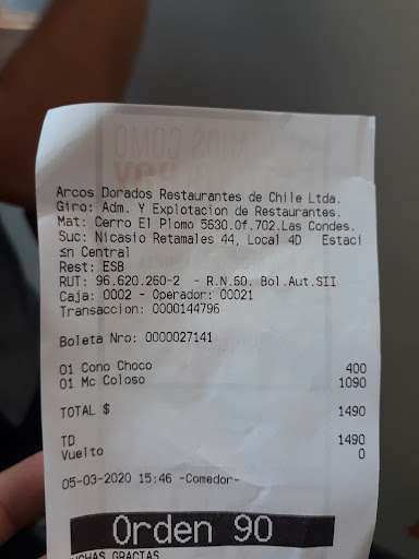 Read moreLa verdad es que yo siento y encuentro que es uno de los pocos McDonald’s que son buenos. Nunca se han equivocado con mi pedido y ademas los hacen super rápido, creo que tienen bastante en consideración que estan en un terminal de buses y mucha gente pide apurada. Por ejemplo, hoy pedi 3 hamburguesas y un helado. Las hamburguesas estuvieron super rapido pero la maquina de helados no funcionaba pero fueron super amables y considerados y me dieron igual el helado y unas papitas fritas extras y hartos aderezos más. Ademas de eso se re disculparon conmigo. Destaco la atención al cliente de todos los jovenes que allí trabajan. Tambien destaco su velocidad y amabilidad porque yo la mayoria de las veces cuando voy a pedir voy super apurado. 10...