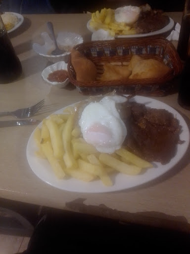 Read moreRecibimiento con sopaipillas y pebre (exquisito) Pedí un bistec a lo pobre: Las papas pasadas de aceite y con sabor extraño Gran parte de la carne era nervio Muchas papas fritas, poca cebolla y poca carne