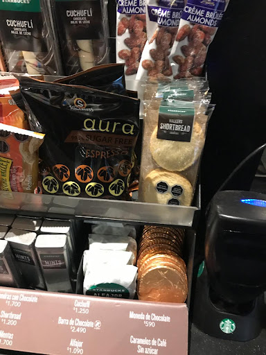 Read moreLugar común. Probé el tradicional express. Me gustó. Buen café. Acompañé con un queque. Infaltable este dulce para combinar con el amargor del express. Lugar tranquilo donde siempre se puede trabajar un poco y matar dos pájaros de un tiro. Cumplir con tus obligaciones y disfrutar un momento delicioso. No soy cliente frecuente de Starbuck, pero siempre lo tengo en mente como una buena posibilidad que cumple mis...