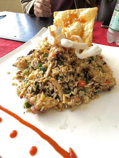 Amo el lomo saltado ❤️, pero por probar algo diferente me pedí un “Cordón Bleu de lomo” y no me gustó, creo que le faltó sabor al cordón y las papas fritas que venían de acompañamiento estaban aceitosas, de las cuales solo comí una 😔. Bueno y no me quedó de otra, como toda esposa “mañosa” 🤭, intercambié con mi esposo la mitad de mi plato por el de él, por lo que probé el arroz chaufa de tres sabores, y bueno, le coloco un 7 de 10 🤷🏼♀️, a mi gusto personal, prefiero las cosas con más sabor.