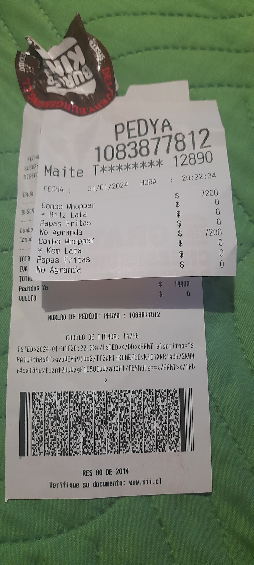 Buenas noches, quisiera expresar una duda y queja de uno de sus locales. Pasa que en el BK de Plaza Egaña un día me pregunté si había una hamburguesa italiana que no fuera la de porte pequeño , que de hecho se llama combo "hamburguesa italiana" y uno de los chicos que atiende muy gentil me aclaró la duda, diciéndome que se podía pedir el woper italiano y ese era grande. Lo pedí un par de veces y pasa que , llego al mall Florida Center, e hice el mismo pedido, en el cual ya cambiando la atención me dicen que eso no se puede hacer, que de ser así me cobrarían extra por cambiar todos los ingredientes, y de ya como cliente cuando te dicen que no se puede hacer algo que ya hiciste con anterioridad es molesto, y para más variar cuando ya me rendí de explicar , miré el mostrador y tienen todas las hamburguesas listas (estoy hablando que todas por que eran mas de 20 que tenían calentando) llegando a mis manos un producto totalmente seco a diferencia del Plaza Egaña donde si me entregan una hamburguesa hecha en el momento , donde los ingredientes están a la vista tras un vidrio. Mi molestia es esa, siempre que voy a la florida me encuentro con otra calidad de servicio, lo cual como fan de su marca me desiluciona de una manera tremenda. Si necesitan que envíe mi numero de boleta lo puedo enviar para demostrar que lo que digo pasó hoy . Me gustaría mucho obtener una respuesta, y en lo posible que mejoraran el personal de ese local que deja mucho que desear. Muchas gracias...