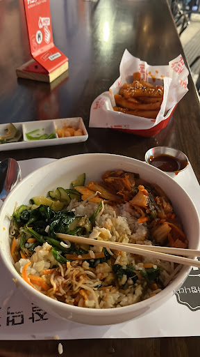El ambiente es frío y mal presentado. Típico de "comida al paso" La cocina es pequeña y no sé si es es el motivo de la demora excesiva en los platos (sabiendo la existencia de los precocidos). No da gusto escuchar música caribeña en un local ambientado en lo asiático. Es de mal gusto. Los platos que pedimos están bien preparados (somos asiduos a la comida coreana). La presentación de los mismos y la mesa son bien recibidos. Se agradece que cuenten con cubierto metálico y platos de loza. La atención del personal es normal, excepto la de Andrés. Él destaca por sobre las mujeres y genera un ambiente de cordialidad, confianza y respeto entre las partes. Recomendaciones: Quien atiende una mesa debería, después de saludar, presentarse con el nombre por el cual quiere ser requerido. Cambiar o quitar la música caribeña. Desentona absolutamente. Iluminar el rincón que está a la derecha del frontis.