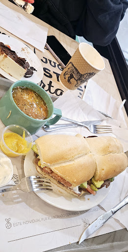 El otro día fuimos a comer alrededor de las 6-7 de la tarde un grupo de 3 personas y nos gustó harto la comida y la atención. Nos salió alrededor de $20.000 entre los 3. Pedimos un éclair, un churrasco Barros Luco, un pastel de zanahoria y un chocolate con vainilla de Marley Coffee. El éclair, aunque estuvo refrigerado, estaba súper rico. Me daba miedo que la crema tuviera sabor añejo por la refrigeración, pero para nada! Estaba fresquito y delicioso. El churrasco Barros Luco es muuuy abundante, bien rico y súper contundente. Entre los 3 compartimos una porción de marraqueta y quedamos satisfechos. El pastel de zanahoria o carrot cake estaba muy rico también. Bien sabrosito y fresco. El chocolate con vainilla de Marley Coffee, pese a que es de máquina, estaba súper bueno. Algo hostigante, pero con el resto de cosas que pedimos se contrarrestaba. En definitiva, los precios son un poquiiiito elevados, pero la calidad de los productos es muy buena 🙂↕️. El lugar es bonito y agradable. Lo...