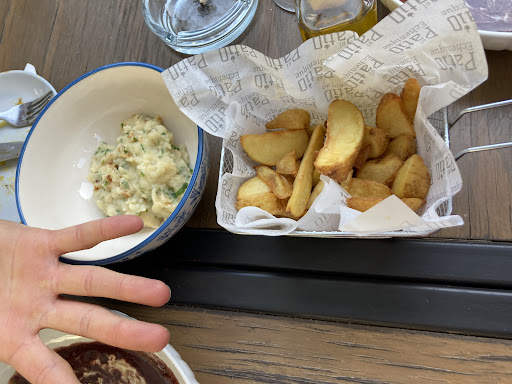 Read moreMi experiencia en este restaurante fue de absoluta insatisfacción. Aunque rescato el ambiente al aire libre, la comida y el servicio fueron decepcionantes. Primero que todo, cuando llegamos le pedí al garzón que nos facilitara una estufa, ya que hacía mucho frío, y como otras mesas también tenían, pensé que sería fácil acceder a una. Nunca llegó. El tiempo de espera fue larguísimo, casi 40 minutos. Pedí costillas baby ribs con la esperanza de disfrutar un plato sabroso y blandito, como ha sido mi experiencia en otros restaurantes. Sin embargo las costillas estaban duras, frías e insultas. El acompañamiento estaba añejo y salado. Le presenté mi queja al garzón para que resolviera el tema, pero además de demorarse 20 minutos más, me trajo el mismo plato recalentado. A esas alturas mi apetito no me permitió hacer un nuevo reclamo, simplemente me lo comí, pero no lo disfruté en lo absoluto. La porción de salmón qué pidió mi pareja, era extremadamente pequeña y delgada, y para colmo tuvo que comer solo, mientras yo lo miraba y esperaba que llegara mi plato. Al momento de pagar la cuenta, nos estaban cobrando 2 veces mi pedido. En fin, este restaurante no cumple con los estándares mínimos de calidad y servicio que un cliente tiene derecho a esperar. No...