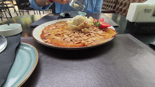 Me sorprendió que tuvieran una carta de postres aparte. A lo cual pedimos un acaramelado de manzana, cómo pueden observar en la foto perfectamente pueden comer tres personas, estaba rico mezclando buenos sabores con helado de vainilla, junto con dos cafés americano para terminar la reunión.