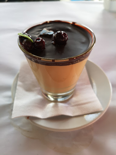 Y el final dulce fue con un manjarate, un delicioso postre de mouse de manjar, coronado con una capa de chocolate amargo, y que obviamente contiene una bola de chocolate en la base. Extraordinario.