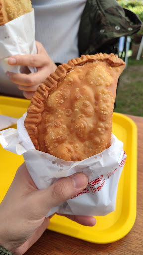 Read moreLas empanadas ricas, pero me sucedió que mientras estábamos comiendo con mi pareja y su hijo, vino un vagabundo a exigirnos que le diéramos comida porque tenía hambre. El niño estaba asustado así que le tuve que dar mi empanada para que se fuera rápido, en pocas palabras un chantaje. Una cosa es pedir, uno da cuando puede y quiere... Pero amedrentar cuando hay un niño presente lo encuentro pésimo.