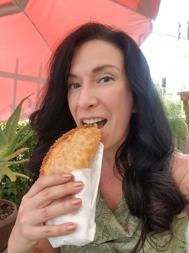 Read moreChill, friendly, beach-like atmosphere in the middle of this urban landscape. The empanadas are big and delicious! I've tried three so far: Queso Jaiva, Del Puerto, and Pino Mariscos - this last is different from the traditional seafood empanadas in that it has fancier seafood. I'm definitely going to be back to try more! I'm including a photo of me, so you can see the...