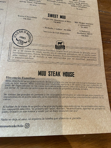 Read moreVisited MUU at Parque Arauco on a Sunday with high expectations, but unfortunately, the experience didn’t quite meet the mark. We ordered the filete, requesting it a punto, but it arrived very dry—far from what we expected. The asado de tira americano was flavorful but disappointingly small, especially considering the price point.