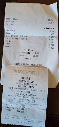 To be clear, the food at P.F. Chang's Parque Arauco is exceptional, and the lively atmosphere adds to the overall appeal of the restaurant. However, the service we received from Jesus was a major letdown. His lack of attentiveness and the unethical handling of the bill overshadowed what could have been a wonderful afternoon. I hope the management takes note of this incident and addresses it appropriately, as it detracts from the otherwise high-quality experience P.F. Chang's aims to provide.