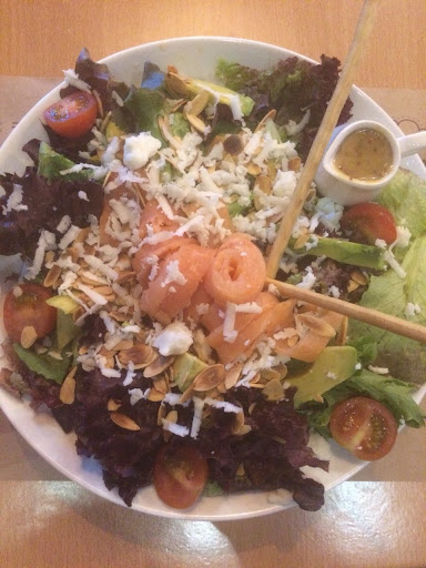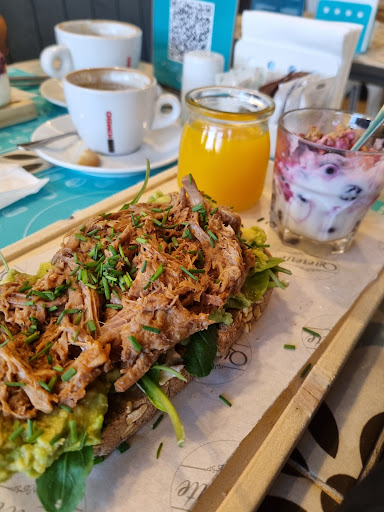 Read moreEl lugar es bellísimo. Muy instagrameable. Paredes, pisos hasta el baño. La decoración preciosa. El menú original. Pedí la ensalada de salmón por recomendación de la mesera y me encanto. Grande y gustosa. El salmón fresco. Los sándwiches correctos, ricos pero no tan grandes. La pizza no nos gustó mucho. Lo mejor del lugar son los postres. Su especialidad la torta de zanahoria es de chuparse los dedos al igual que el brownie. El brownie es uno de los mejores que hemos comido. Los precios correctos para la zona. La atención amable en todo el momento. La comida rápida y todo bien...