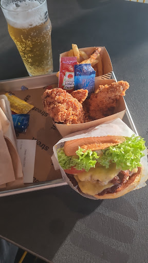 The burgers were good and tasty...pretty small though, and not in a combo, so expensive for what was offered. The bun was soft and fresh, the meat juicy though the patty was messy. Good to see the ketchup, mayo and mustard were Heinz, but I had to ask for more, the just have me two ketchup packets for two whole burgers...