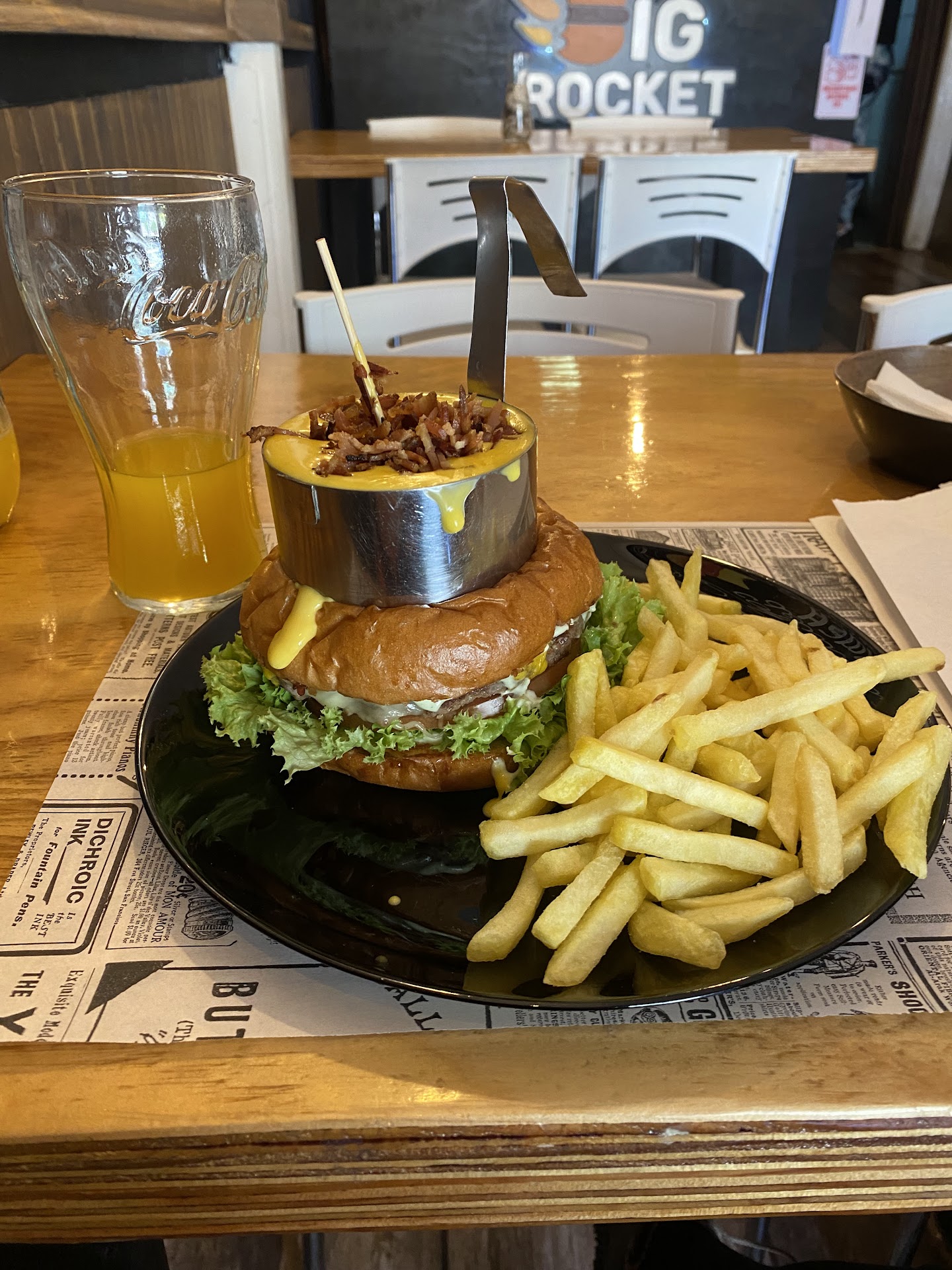 Después de mucho tiempo, el día 20 de mayo con mi esposo decidimos ir a Big Rocket. En pocas palabras, puedo definir todo como excepcional. Desde la atención de los meseros, la comida, la decoración hasta el ambiente. Puedo decir, con toda firmeza, que fueron las hamburguesas más ricas que hemos comido en nuestras vidas. La carne rica y jugosa, los ingredientes frescos, las papas recién fritas, los bebestibles bien helados. Además, el tamaño de las porciones es sumamente adecuado, no quedarás con hambre. No tenemos dudas de que volveremos a ir al local y nos volveremos en clientes frecuentes. No me queda más que agradecer por tan maravillosa...