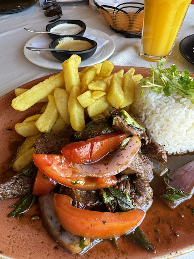 Read moreBuen espacio para estacionar; amplias terrazas y salón sin aire acondicionado (me tomé un pisco sour no se si quedé roja de calor 😅 o de lo fuerte que estaba 😋). Los dos platos que probé estaba sabrosos: un lomo saltado con risotto cremoso y filete de vacuno con platano maduro frito. La presentación sencilla, pero linda. No fue muy larga la espera de los platos. Mi trago fue un pisco sour de maracuyá que estaba rico pero faltó esa gótita de amargo de angostura que remarca el sabor y le da un toque estético. Finalmente de postre, un suspiro limeño, estaba rico de sabor, pero me decepcionó que lo sirvieran en un envase de plástico desechable, amigable con el 🌎. Recomiendo este lugar para un almuerzo rico en familia pero vayan con...