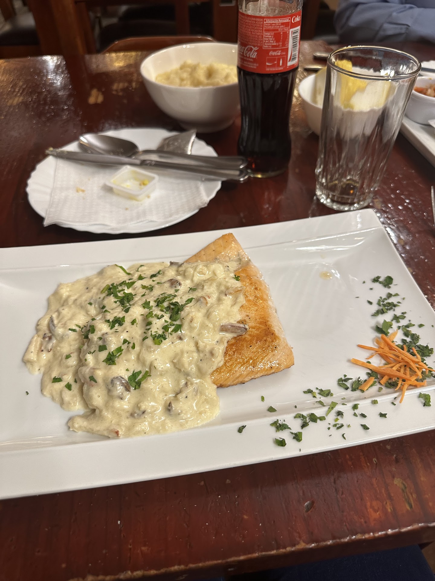 Read moreHorrible experiencia, pedí un Lenguado, que me confirmaron que tenían en stock y al momento de recibir el plato me encuentro con la sorpresa que es Pangasius, pescado de muy poco valor y con la clara intención de engañarme. Al hacer el reclamo al garzón se lleva el plato a la cocina y vuelve con la respuesta que se les había acabado el pescado solicitado inicialmente y que disculpara el error. No se acercó ninguna persona responsable de la cocina ni del local para dar una disculpa ni para aceptar mi reclamo de que estaban tratando claramente de engañarme con un pescado de pésima calidad y cobrarme por uno bastante mas caro. Tengo la duda de cuantas personas habrán engañado con esta práctica de muy mal gusto y absolutamente poco profesional para un Restaurante que lleva tantos años...