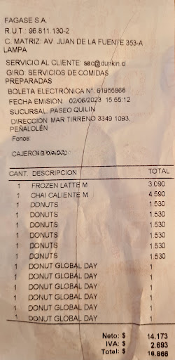 Read moreEn cualquier dia normal, venden 12 donas a $ 13.770 y 6 donas a $ 7.650. Hoy, que es el Donut Day, tienen una promo 2x1, con lo que uno podria pensar que si compra 12, pagara por 6. Pero en realidad justo hoy cobran por la dona individual, es decir $ 1.530 por cada una, asi que en realidad no terminas pagando como un 2x1 sino en efecto mas de $ 9.000. En el momento el cliente decide pagar, ya ha esperado bastante en la fila y siente pudor por hacer el reclamo, pero deberiamos estar atento a estas campañas que se ven bien pero en donde las empresas finalmente hacen lo...