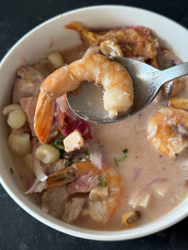 Pedí por delivery y ha sido el peor ceviche que he comido en mi vida. Pulpo durísimo imposible de comer, camarones todos con cola!! Además la leche asada costó 3700 y como ven en la fotografía eso es lo que viene. El ceviche costó 16.000 y no me lo pude comer. La porción estaba descuidada con trozos enormes de camote de vez en cuando. No pidan aquí! Pésima experiencia y más encima se demoraron bastante en tener la...