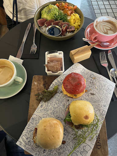 Read moreLe di más de una oportunidad a este local antes de escribir esta reseña. Soy una persona que no se deja llevar por las apariencias, pero debo admitir que me sentí encandilado al admirar su menú, fui con la misma ilusión que un niño, aunque, al final, la experiencia no me convenció. Para empezar, el brunch para 2 es, en realidad, para una sola persona, a menos que estés enfocado en consumir pocas calorías. No es tan contundente como uno podría esperar, y aunque la presentación es impecable, el precio no corresponde a la comida en sí, sino más bien a la estética del lugar y a su cuidada imagen. Y eso me lleva a mi siguiente punto: el local es hermoso, con asientos cómodos y una estética "instagrameable" muy contemporánea, los precios del resto del menú están bien, nada exagerado, y los tragos son planos y simples, sin mayor sorpresa. Pero el verdadero problema de este lugar es su atención al público. Una desastrosa combinación de tiempos de espera absurdos y una pésima disposición de los meseros. No solo me trataron mal(respuestas secas y desagradables)(me tiraban la boleta encima), sino que cada vez que fui (cuatro veces en total), la experiencia al cobrar fue inolvidable por lo desagradable. El "precio total" que me decían incluía, sin consultarme, la propina, solo la pagué la primera vez por descuido, pues me agarró desprevenido. Aun así, es probable que vuelva. El lugar es cómodo y agradable para trabajar o leer, tranquilo y alejado del bullicio de la calle. Pero esos son, definitivamente, sus únicos...