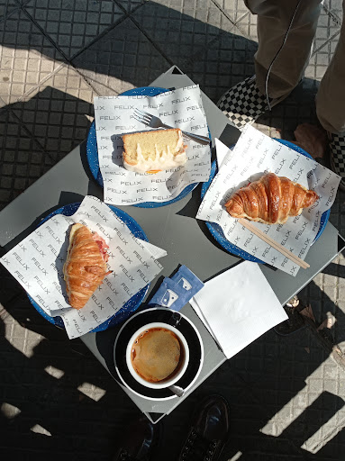 El café en Felix está buenísimo, un 10 para l@s baristas sin dudarlo, en dos ocasiones pedí diferentes opciones con y sin leche, espressos y filtrados y cada uno estaba en su punto ideal, nada que decir al respecto. En cuanto a la comida, sólo en una ocasión pedí el croissant, que para mi gusto se puede mejorar(la calidad del café es tan buena que me es inevitable comparar ambos productos) lo que insisto sigue siendo bastante superior a lo que se puede encontrar en otros lugares.