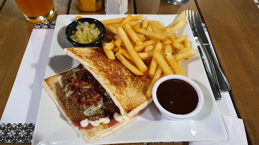 2 stars because service was great and beer likewise. But, here is the issue... The name is that of a burger restaurant! The menu is 80% burgers - so I had the burger called Grillada. It's beef patty, cheese (forget the name of that one), gorgonzola, bacon crumble, and some dressing of the house, and BBQ sauce. Sounds pretty powerful! I ordered it with the BBQ sauce on the side - BBQ sauce tends to drown out everything else. Oh boy... What a let down... Have a look at the ingredients list again! I could not even taste the gorgonzola! Not the bacon! Not the anything! It was a mushy blob of no flavour at all! I suspect that usually people are happy with this burger because the BBQ sauce "takes charge". But, hey - the...