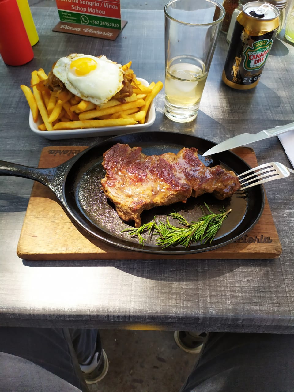 Read moreUbicado al lado del metro Santa Isabel, Plaza Victoria es de aquellos locales ideales para ir en pareja, tomar y comer algo rico de manera relajada, conversar y compartir. El ambiente es bien tranquilo, hay buena música (a un volumen bien moderado, lo cual se agradece) tiene unas cuentas mesas al exterior y por lo que pudimos ver, es amplio (da la impresión que es más pequeño, principalmente porque está ubicado en una esquina). Llegamos a eso de las 23:30 hrs., no había tanta gente, por lo menos en el interior donde nos ubicamos, la carta tiene varias opciones de piqueos, sándwiches y pizzas (las que parecen ser el fuerte de éste local), optamos por pedir 3 cosas distintas: las albóndigas en salsa de champiñones, las papas y champiñones salteados al romero y el crudo, cada preparación estaba perfecta, porciones abundantes y buena presentación, me gustaron todos pero destaco las papas y champiñones salteados, una verdadera delicia, el crudo tampoco se queda atrás, estaba fresquísimo, viene con todos sus acompañamientos separados en pequeños tarritos (la mayo increíble!). Acompañé éstas delicias con un schop de cerveza Estrella (ojo que también hay schop de Gulden Drakk, que comúnmente sólo se ve en versión embotellada, bien ahí), la atención fue excelente, los dos mozos que nos atendieron fueron muy simpaticos y amables, un agrado cuando atienden bien. Para los que van en auto, recomiendo estacionarse en la calle chica que hay entre el metro y el local, es ideal ya que tienes a la vista el auto constantemente. Es un local bien bueno, pasamos un rato tranquilo, bien atendido con comida exquisita, los consideraré de todas maneras en...