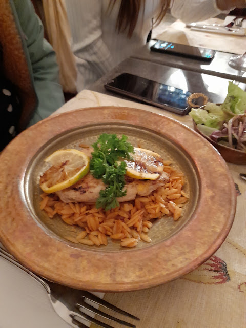 Probamos Beyti Kebap, muy rico, aunque indicaba que tenía dos tipos de carne, vacuno y cordero, solo aprecié un tipo de carne en trozos, la otra era carne molida sin sabor definido. Particularmente no me gusta la carne molida, ni albóndigas por eso pedí este plato y no otros, pero tenía carne molida de relleno.